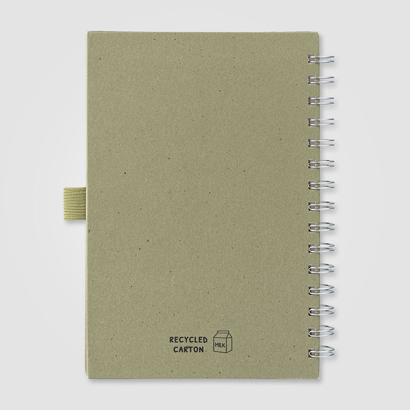 This Terra Recycled Milk Carton Hard Cover Spiral Notebook - A5 offers a unique cover made from 20% recycled milk cartons, giving it a distinctive, textured look with dots due to the recycled material.
