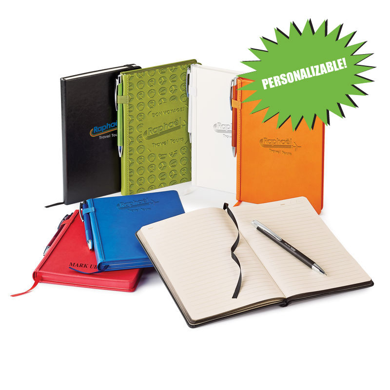 Imprint Area: 4.75" x 7" (.5" away from edges) on journal, 2.25" x .5625" on pen