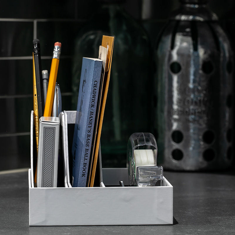 Standard Packaging: packaging transforms into a: DESK ORGANIZER