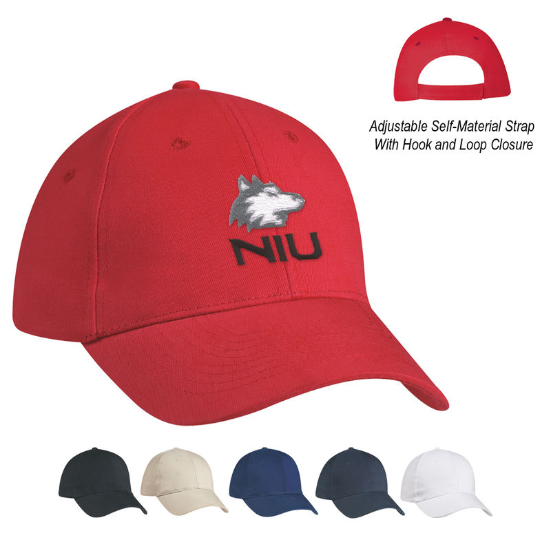6-Panel, Medium Profile Economy Cap with Self-Fabric Velcro Closure - EMBROIDERED - BUDGET