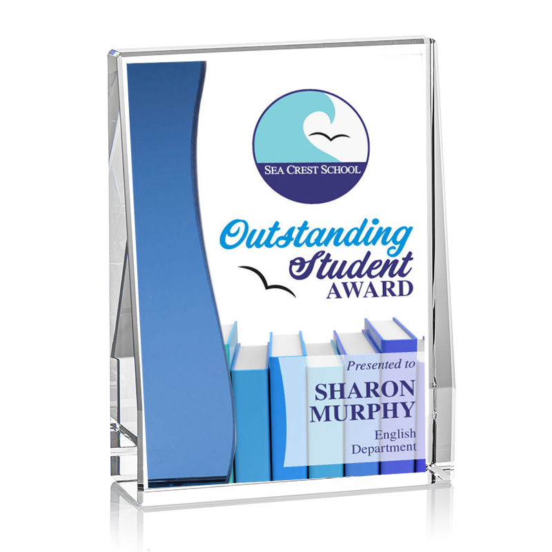 This award is an extra thick freestanding solid Optical Crystal block that elegantly tapers to highlight your magnificent achievement.