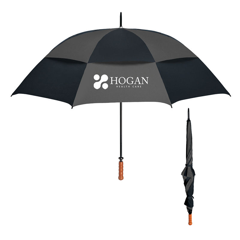 68" Arc Manual-Open Nylon Vented Golf Umbrella is Wind-Rated Up To 55 MPH (44" Folded)