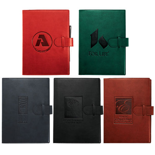 7" x 10" Bound Refillable Italian Faux Leather Journal with Tab and Loop Closure
