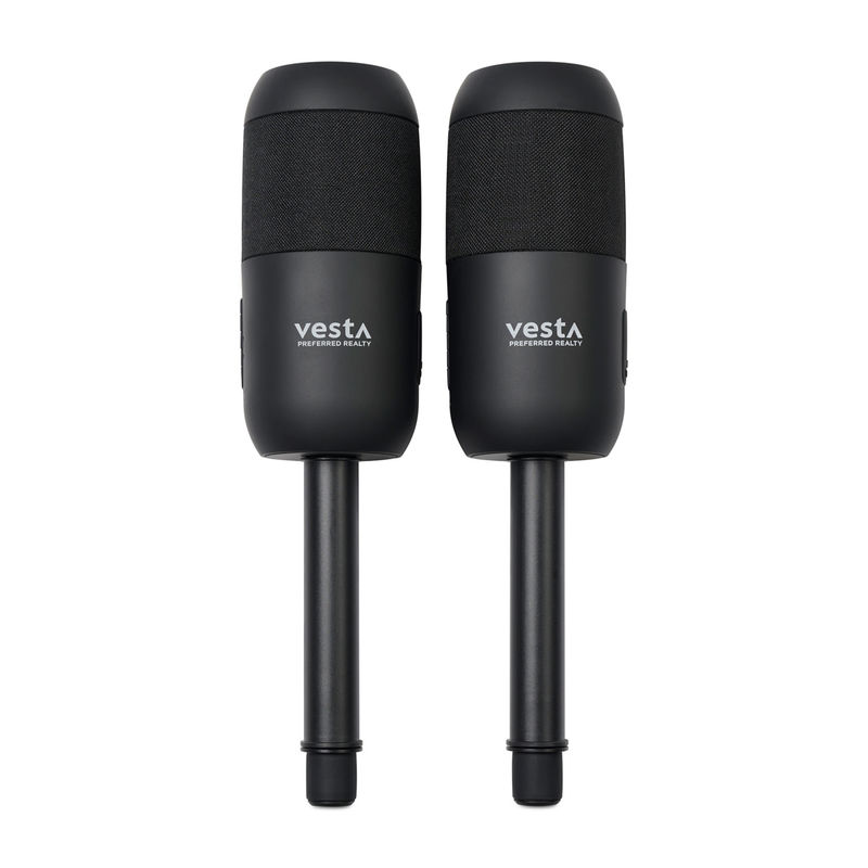 • Includes: 2 speakers, 2 removable stakes, 2 3.5mm cables, 2 USB-C charging cables