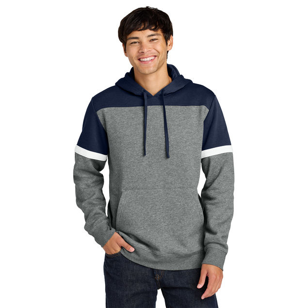 Drive home who you’re cheering for in this cotton-rich colorblock hoodie.