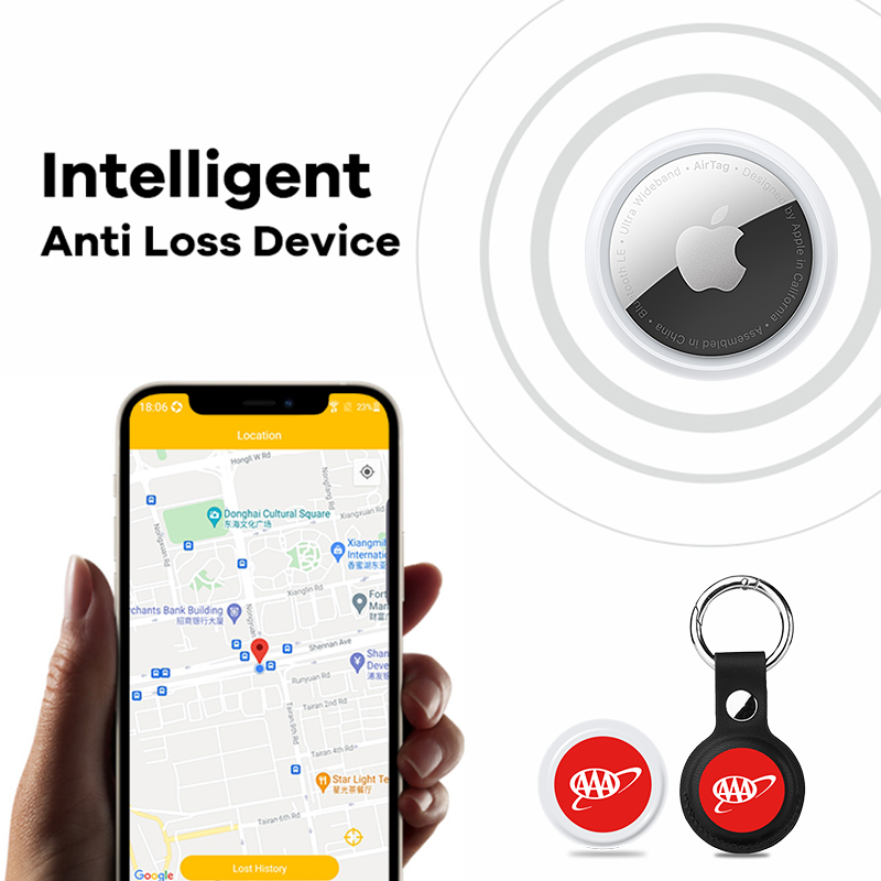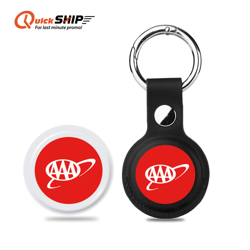 The package include a full-color imprint on the AirTag, a full color color imprint on the leather case, and the custom Airtag is inserted to the leather case.