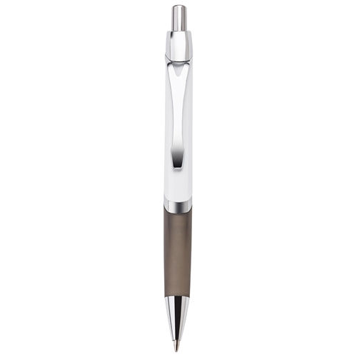 This push-action plastic ballpoint pen has a uniquely designed flat barrel, which provides a large imprint area in 4-color process.