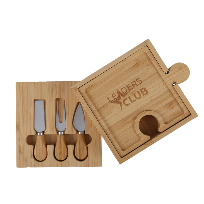 • Set includes: bamboo trays, a bamboo caddy, utensil holder, cheese fork, spade, and flat knife