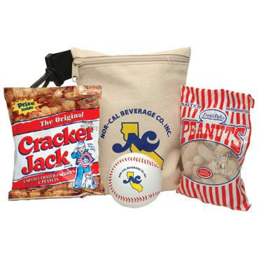 • The Ball Game Kit includes your choice of either in the shell peanuts or Cracker Jacks and a synthetic baseball in clip-on pouch.