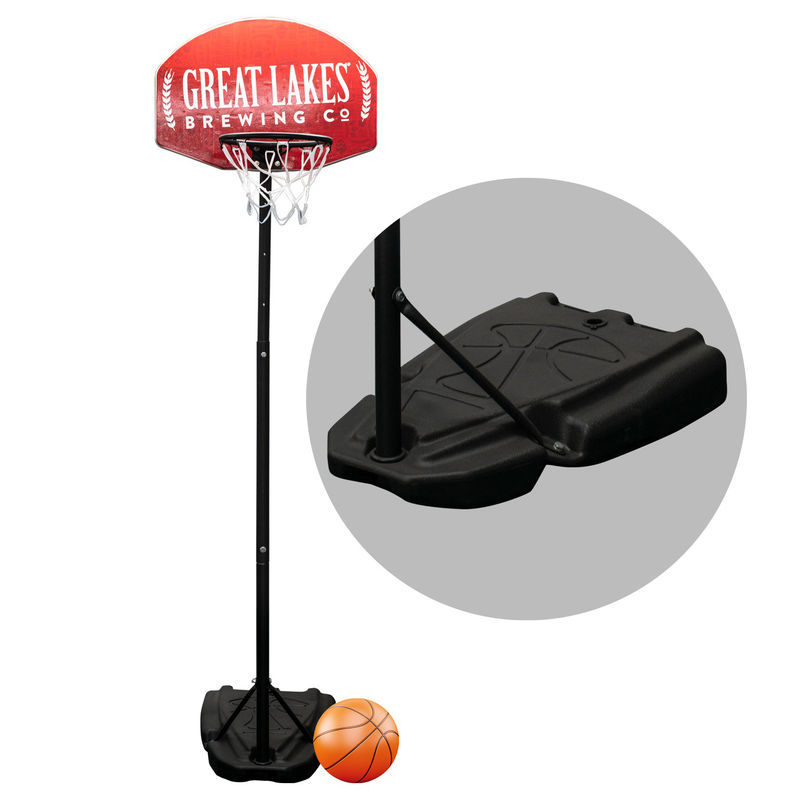 The black steel poles can be adjusted to a max rim height of 76″ and the hollow base can be filled with sand or water for added stability.