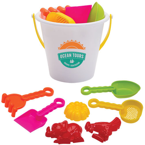 Beach Bucket Includes Colorful Tools for Molding Sand