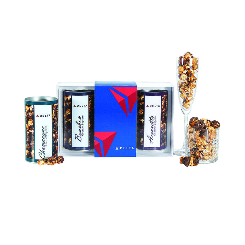 This Boozy Popcorn Gift Set comes in 3 cocktail inspired flavors - Champagne, Amaretto and Bourbon.