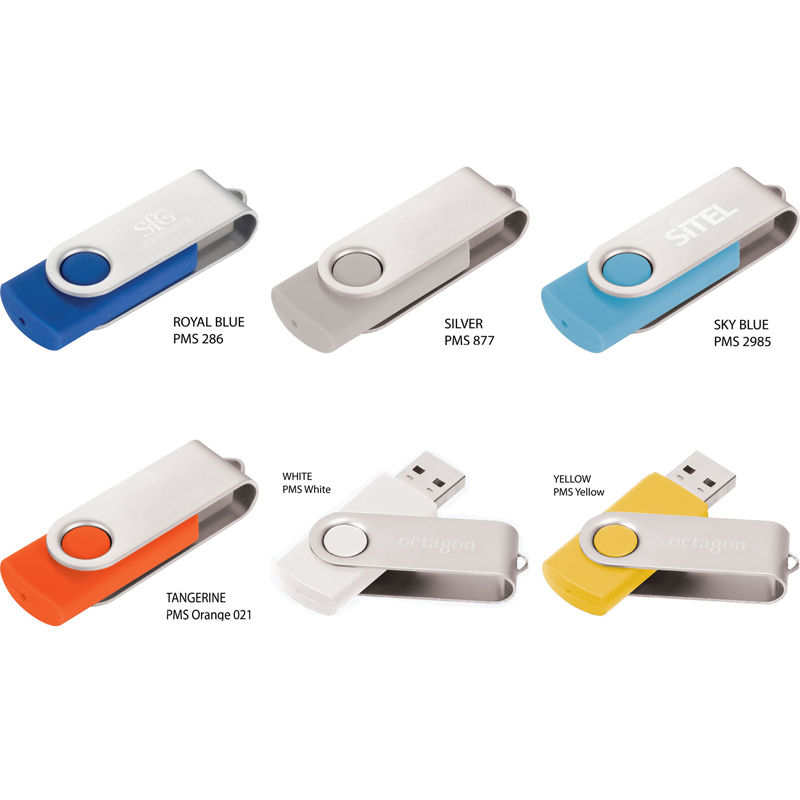 This compact flash drive folds neatly into a protective stainless steel cover.