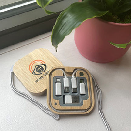 The case is made of bamboo and the cables are composed of wheat straw, so not only do you have a convenient charging kit, but an Eco friendly one as well!