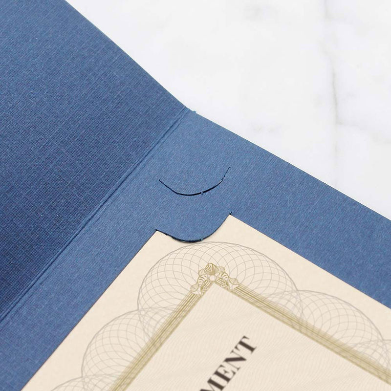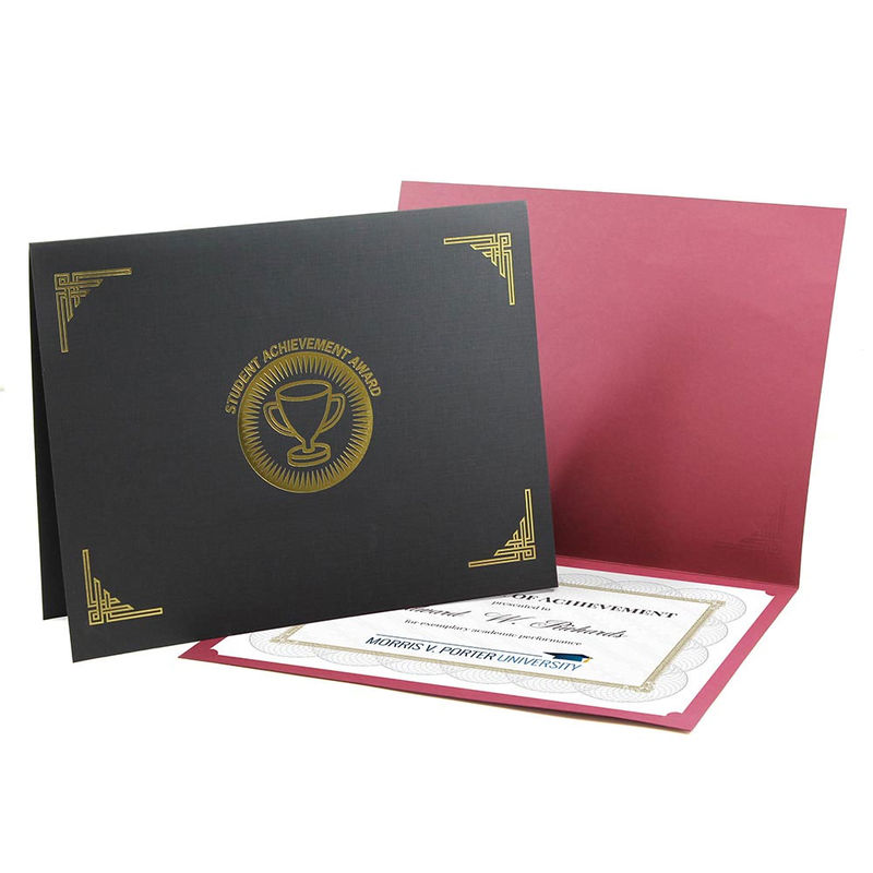 • Inside of folder has half moon die-cut tabs to hold certificate or awards in place