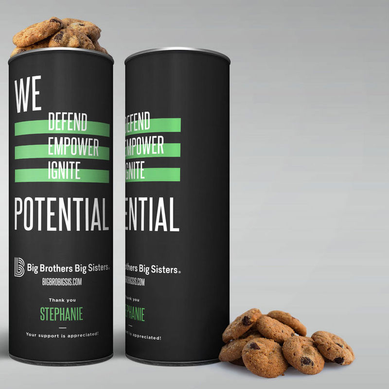 Our cookies are packaged in air tight canisters with a variety of contemporary and classic designs which are customized to include your artwork.