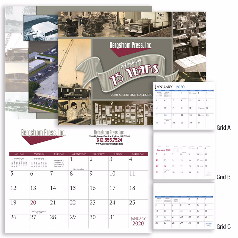 A 12-month staple bound appointment calendar featuring 13 custom images.