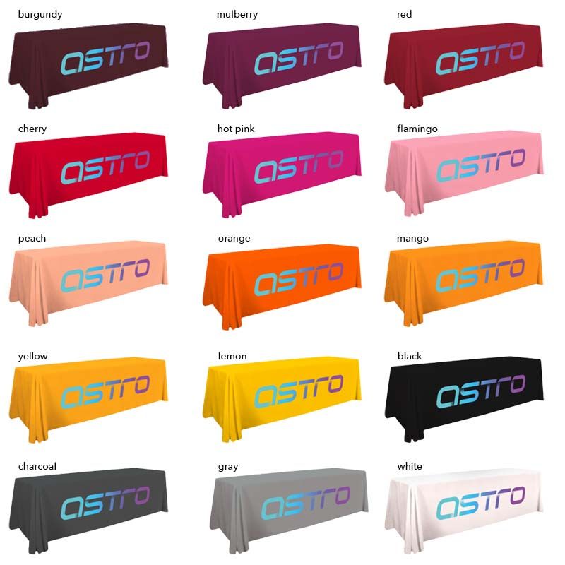 Economy 8' LASER-CUT-EDGE Flame-Retardant Table THROW with Full-Color Imprint on Front - OPEN BACK