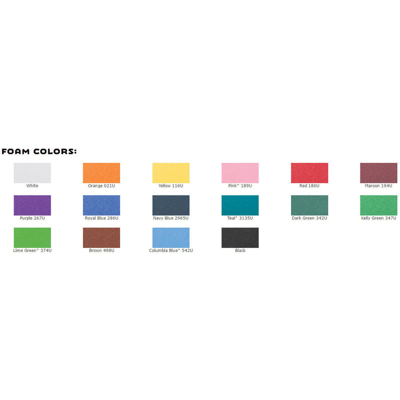 Product/Part Colors 1: white, orange 021, yellow 116, pink 189, red 186, maroon 194, purple 267, royal blue 286, navy blue 2965, teal 3135, dark green 342, kelly green 347, lime green 374, brown 498, columbia blue 542, black