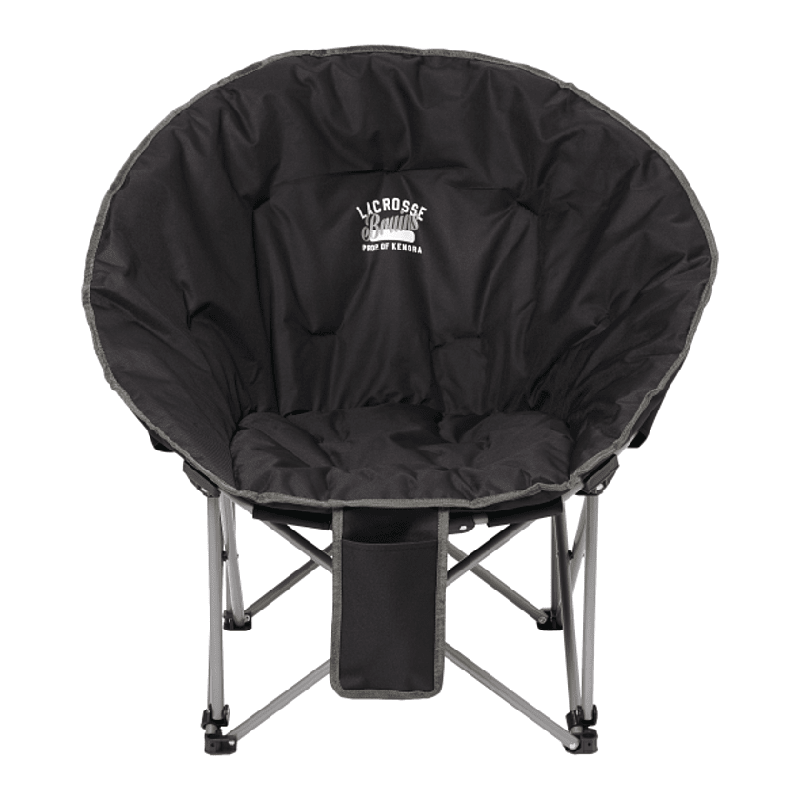 Made from durable 600D fabric, this chair features a unique and comfortable rounded "moon" design with padded construction and a front tech pocket.