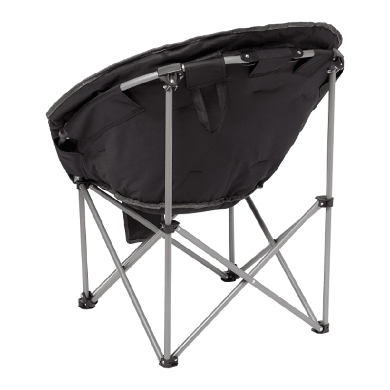 The Folding Moon Chair features an extra sturdy steel frame and a loading weight limit of 400 lbs.