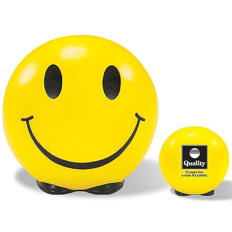 • Round stress reliever with the classic friendly face background