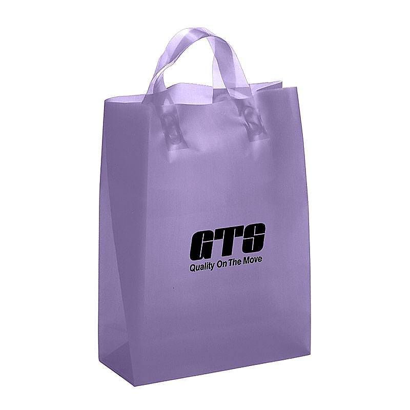 Our Frosted Brite Shopper bags have a soft loop handle and are available in a variety of colors.