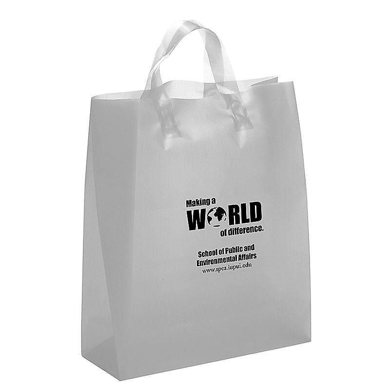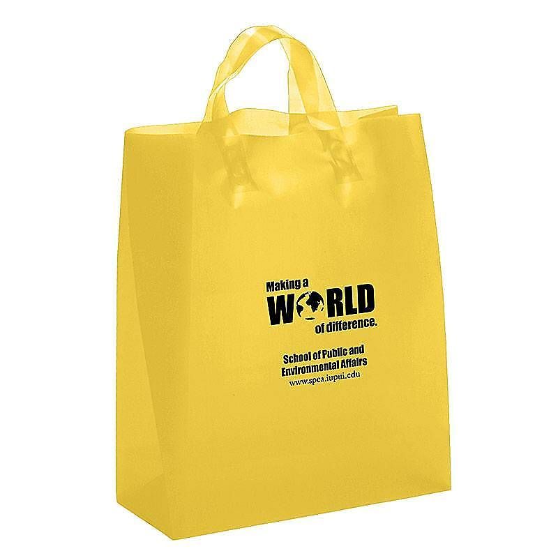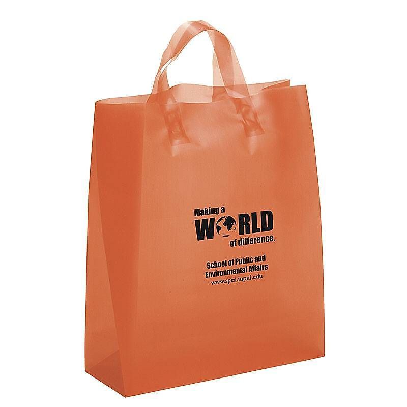 Our Frosted Brite Shopper bags have a soft loop handle and are available in a variety of colors.