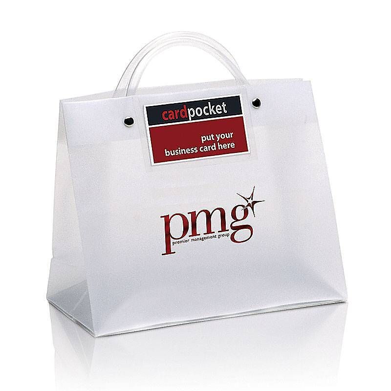 Frosted Plastic Executote Gift Bag with Outside Business Card Pocket (Medium, 10" x 8") - Foil Imprint