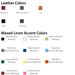 Product/Part Colors 1: LEATHER COLORS: mahogany, distressed brown, tan, black, slate grey
