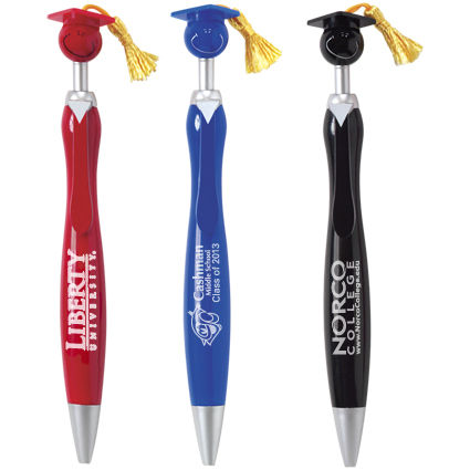 • Click-action ballpoint pen with mortarboard, tassel and clip