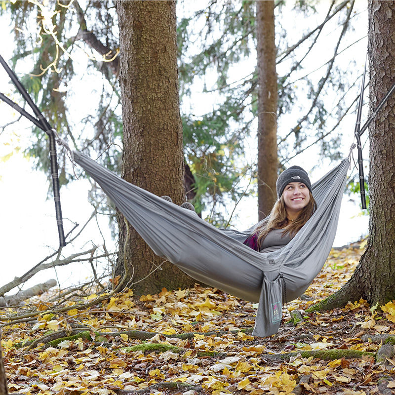 Also included are tree-friendly, easy-to-use hanging straps that don't require the user to tie a knot, and have 5 adjustable hanging positions using loops and steel carabiners.