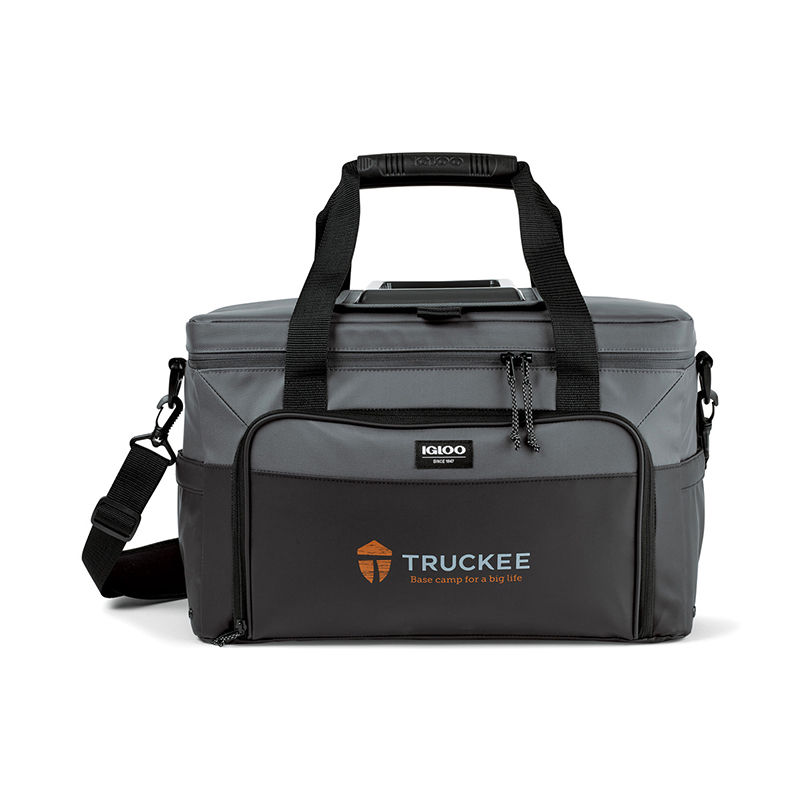 Cooler with 36-can capacity, leak-resistant, heat-sealed, carry handles, multiple pockets, etc.