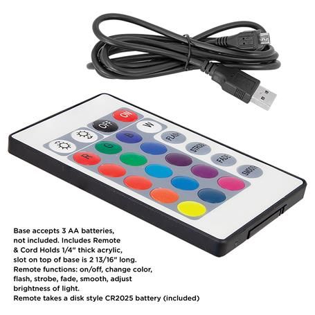 The lit base holds the creative clear acrylic piece and projects colorful light upward.