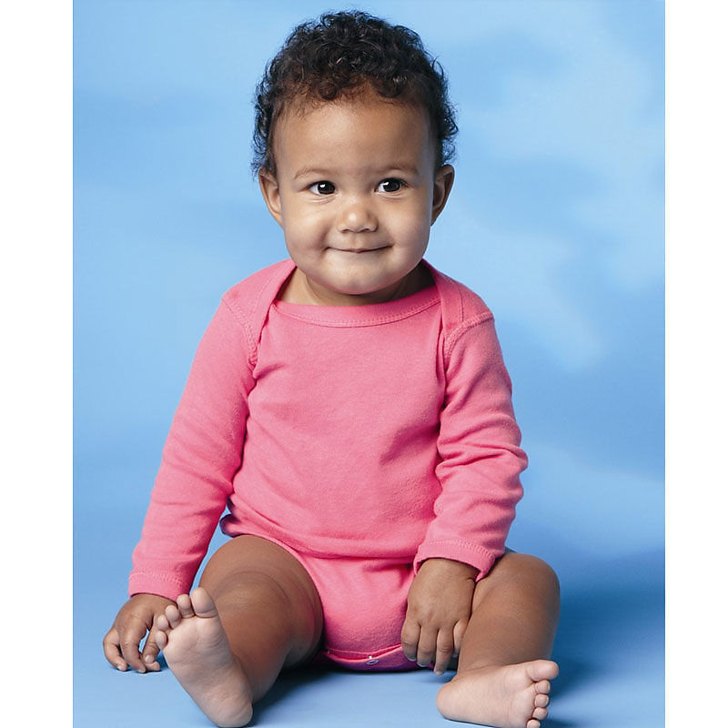 For chillier weather, dress baby in this soft long sleeve creeper in a great fitting 1x1 baby rib.