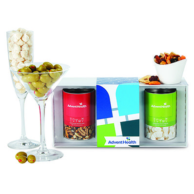 Champagne Bubbles, Chocolate Almond Martini Olives and our Ultimate Bar Snack Mix.