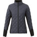 Product Material: OUTER SHELL: 100% Nylon dull cire 380T woven, water repellent (600mm) and downproof, 38 g/m² (1.1 oz/yd²). CONTRAST: 100% Polyester knit with DWR finish. INSULATION: 100% Polyester faux down fill, 250 g (8.8 oz) Men's sz L, 217 g (7.7 oz) Women's sz M.