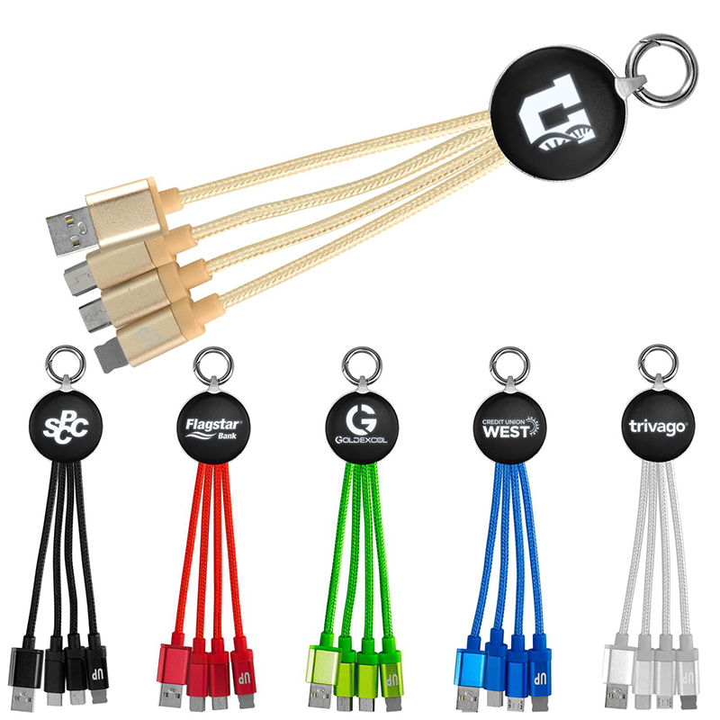 LIGHT-UP LOGO Metallic 3-in-1 Charging Cable - Micro USB, USB Type C, and Apple® 8-pin Tips