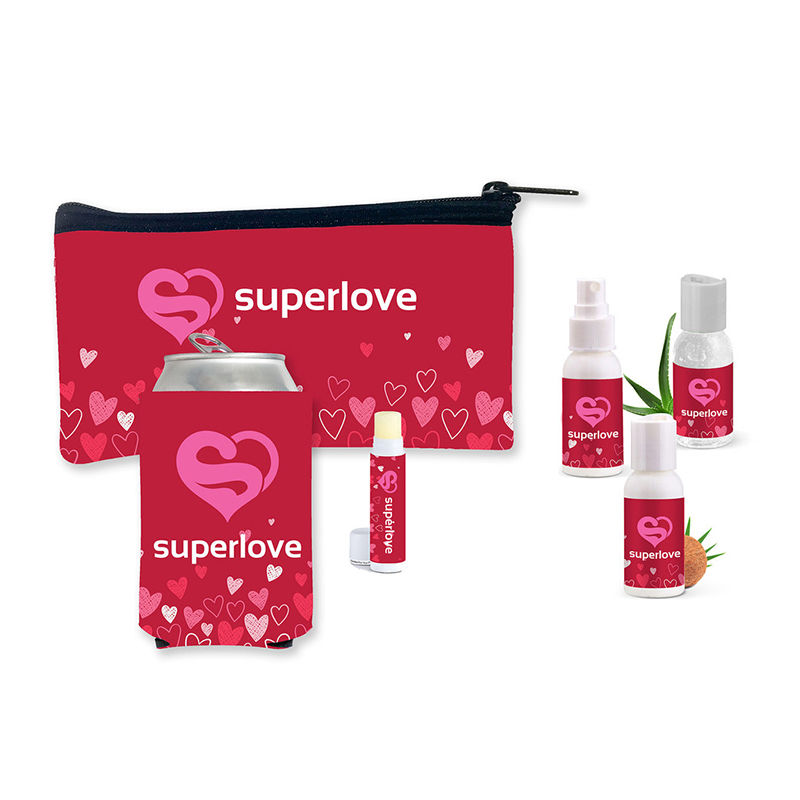 Lake Bag Kit Includes Beverage Insulator, Lip Moisturizer, Sunscreen, Aloe Vera and Insect Repellent