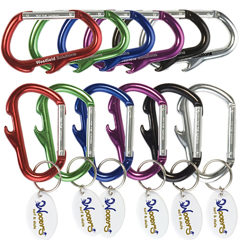 Large 3 1/2" Carabiner Keytag with Bottle Opener with Imprint on Oval Tag