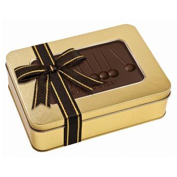 Product Size: Chocolate: 6 3/4" x 4 3/4" x 1 3/8" Tin: 7 1/4" x 5 1/8" x 2"
