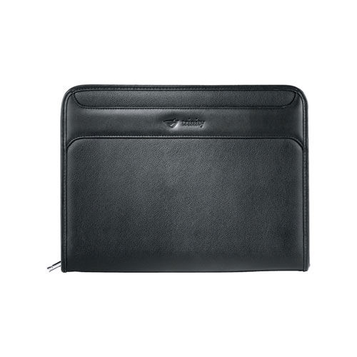 • Interior organizer features multiple business card pockets, clear ID window, gusseted file pocket, elastic media and pen loops, and accessory pouch with Velcro closure.