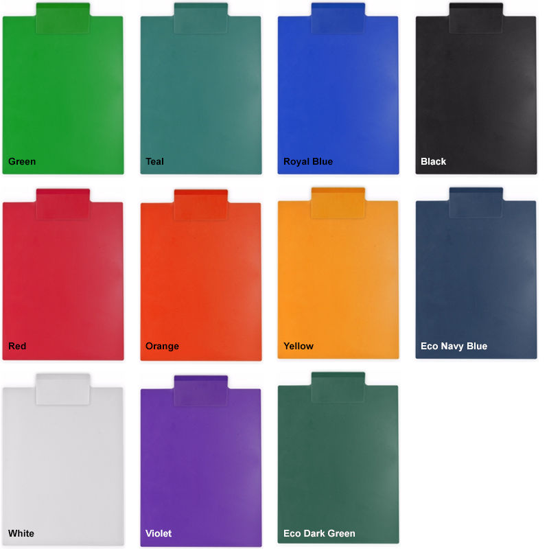 Product/Part Colors 2: Clip: Green, Teal, Royal, Black, Red, Orange, Yellow, Eco Navy, White, Violet, Eco Dk Green