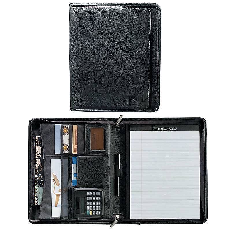 Letter-Size Pebbled-Texture Grain Leather Zippered Padfolio