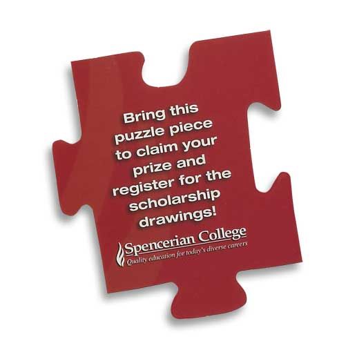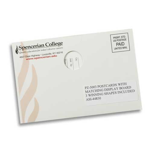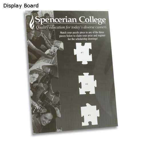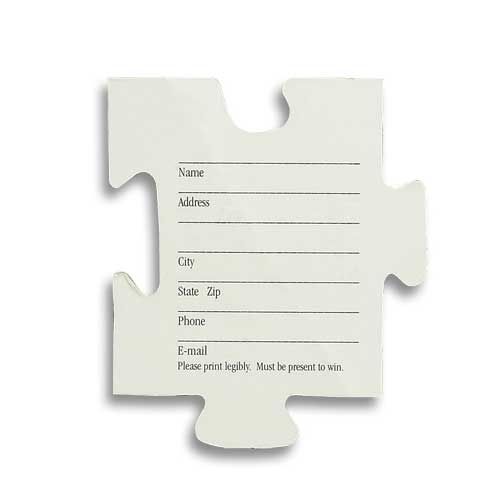 Mail out the postcard as an invitation. The recipient brings the punch-out puzzle piece on the postcard to your booth or place of business. If their puzzle piece fits into one of the spaces on your display board, they win the prize printed in that space!