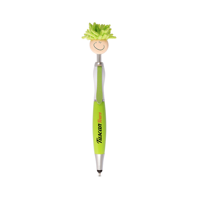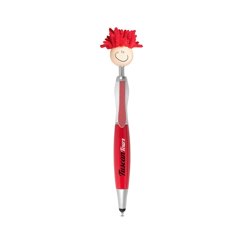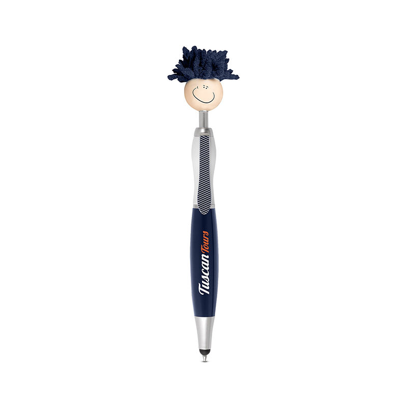 • Click-action ballpoint pen with smiley face, tie-shaped clip and mop-top hair