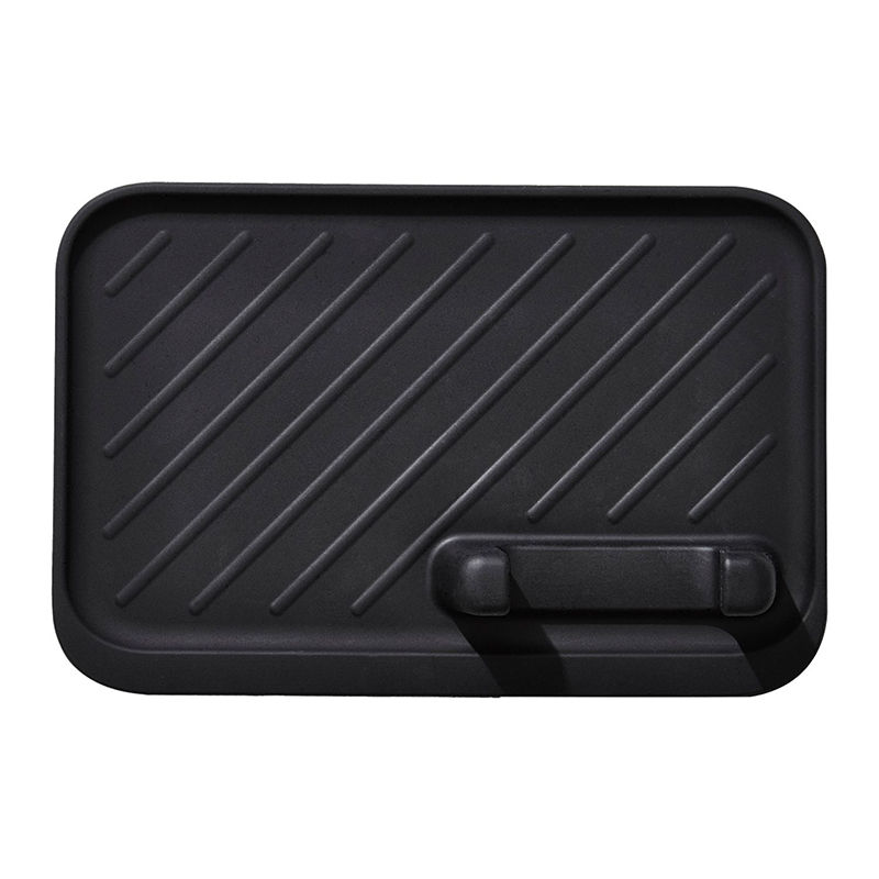 The non-stick silicone construction and unique tong holder help with one-handed use–no more locking and unlocking tongs between turns.