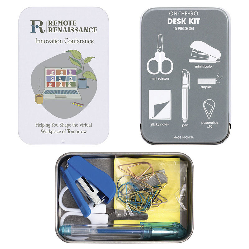 Stay organized and ready for any task with the On the Go Desk Kit, your portable office essentials in a sleek tin case