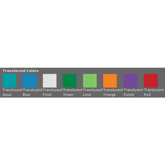 Product/Part Colors 1: Translucent colors: aqua, blue, frost, green, lime, orange, purple, red
