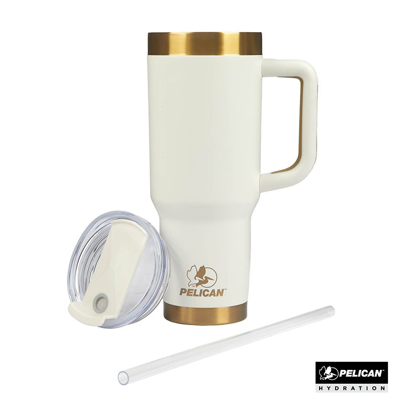 Pelican® 40 oz Double Wall Stainless Steel Travel Tumbler with Gold Accents is Perfect for 50th Anniversaries